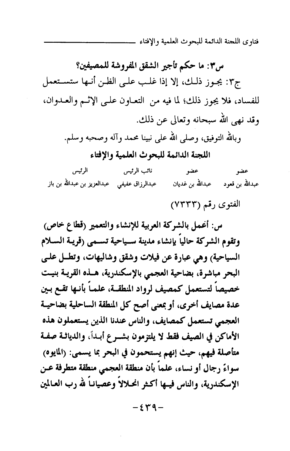 س3: ما حكم تأجير الشقق المفروشة للمصيفين؟
