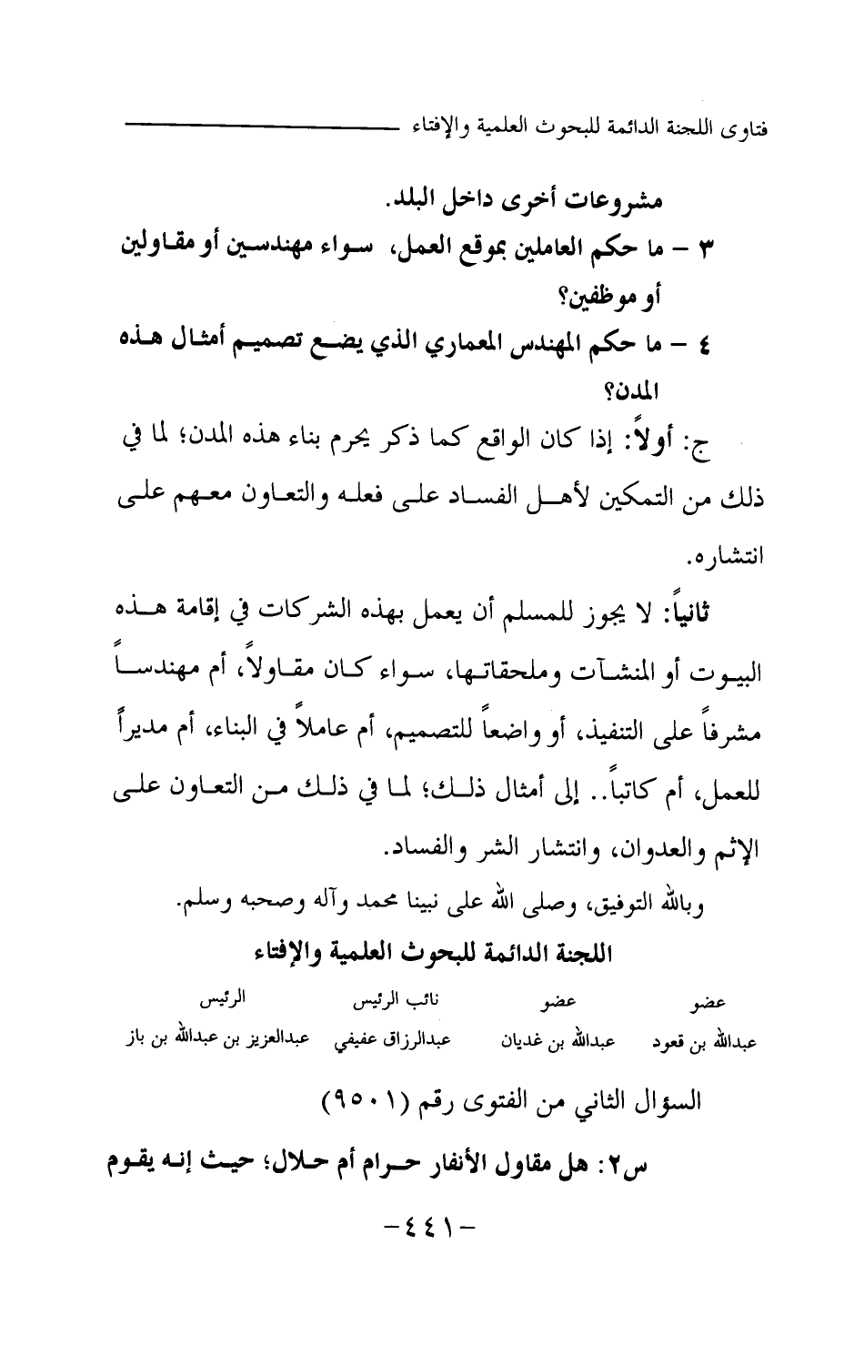مشروعات أخرى داخل البلد. 3- ما حكم العاملين بموقع العمل، سواء مهندسين أو مقاولين أو موظفين؟ 4- ما حكم المهندس المعماري الذي يضع تصميم أمثال هذه المدن؟