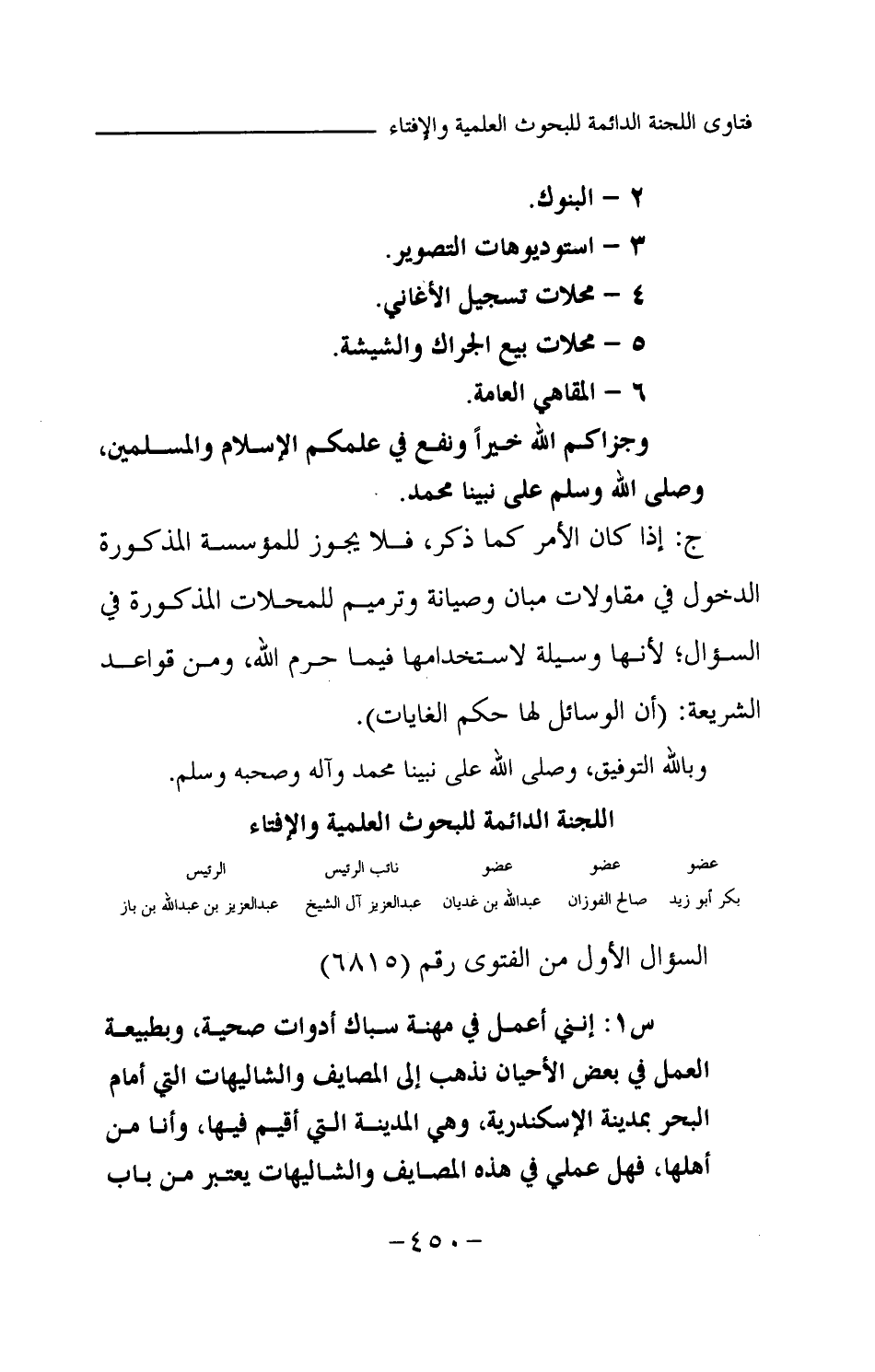 بكر أبو زيد ... صالح الفوزان ... عبد الله بن غديان ... عبد العزيز آل الشيخ ... عبد العزيز بن عبد الله بن باز