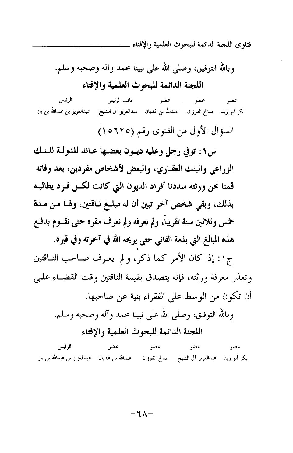 بكر أبو زيد ... عبد العزيز آل الشيخ ... صالح الفوزان ... عبد الله بن غديان ... عبد العزيز بن عبد الله بن باز