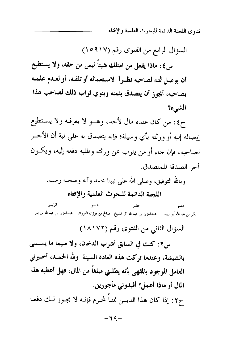 بكر بن عبد الله أبو زيد ... عبد العزيز بن عبد الله آل الشيخ ... صالح بن فوزان الفوزان ... عبد العزيز بن عبد الله بن باز