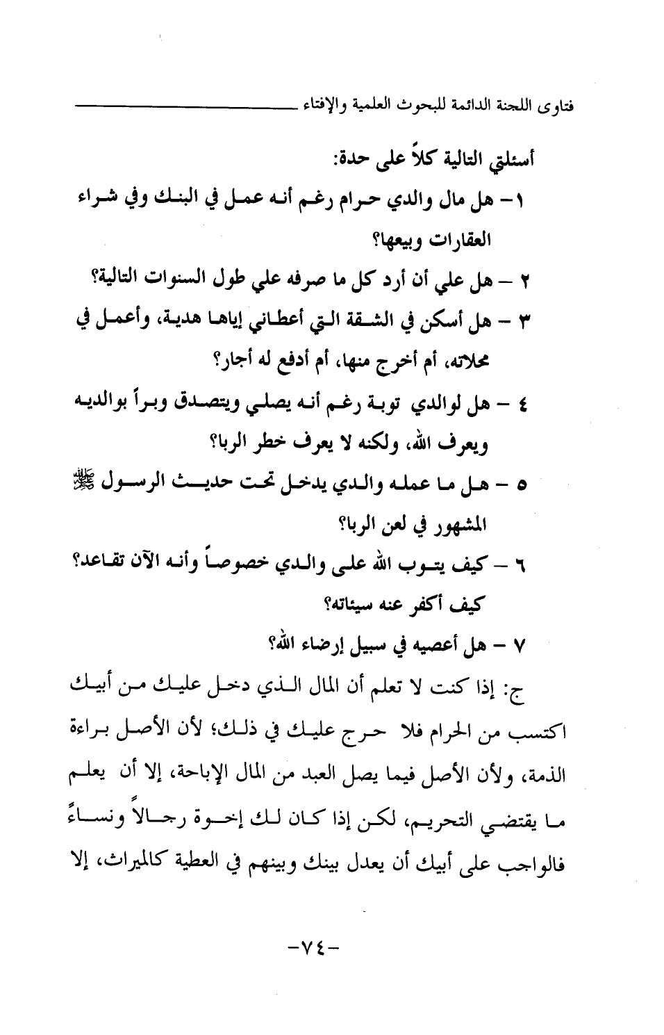 أسئلتي التالية كلا على حدة: 1- هل مال والدي حرام رغم أنه عمل في البنك وفي شراء العقارات وبيعها؟ 2- هل علي أن أرد كل ما صرفه علي طول السنوات التالية؟ 3- هل أسكن في الشقة التي أعطاني إياها هدية، وأعمل في محلاته، أم أخرج منها، أم أدفع له إيجار؟ 4- هل لوالدي توبة رغم أنه يصلي ويتصدق وبرا بوالديه ويعرف الله، ولكنه لا يعرف خطر الربا؟ 5- هل ما عمله والدي يدخل تحت حديث الرسول -صلى الله عليه وسلم- المشهور في لعن الربا؟ 6- كيف يتوب الله على والدي خصوصا وأنه الآن تقاعد؟ كيف أكفر عنه سيئاته؟ 7- هل أعصيه في سبيل إرضاء الله؟