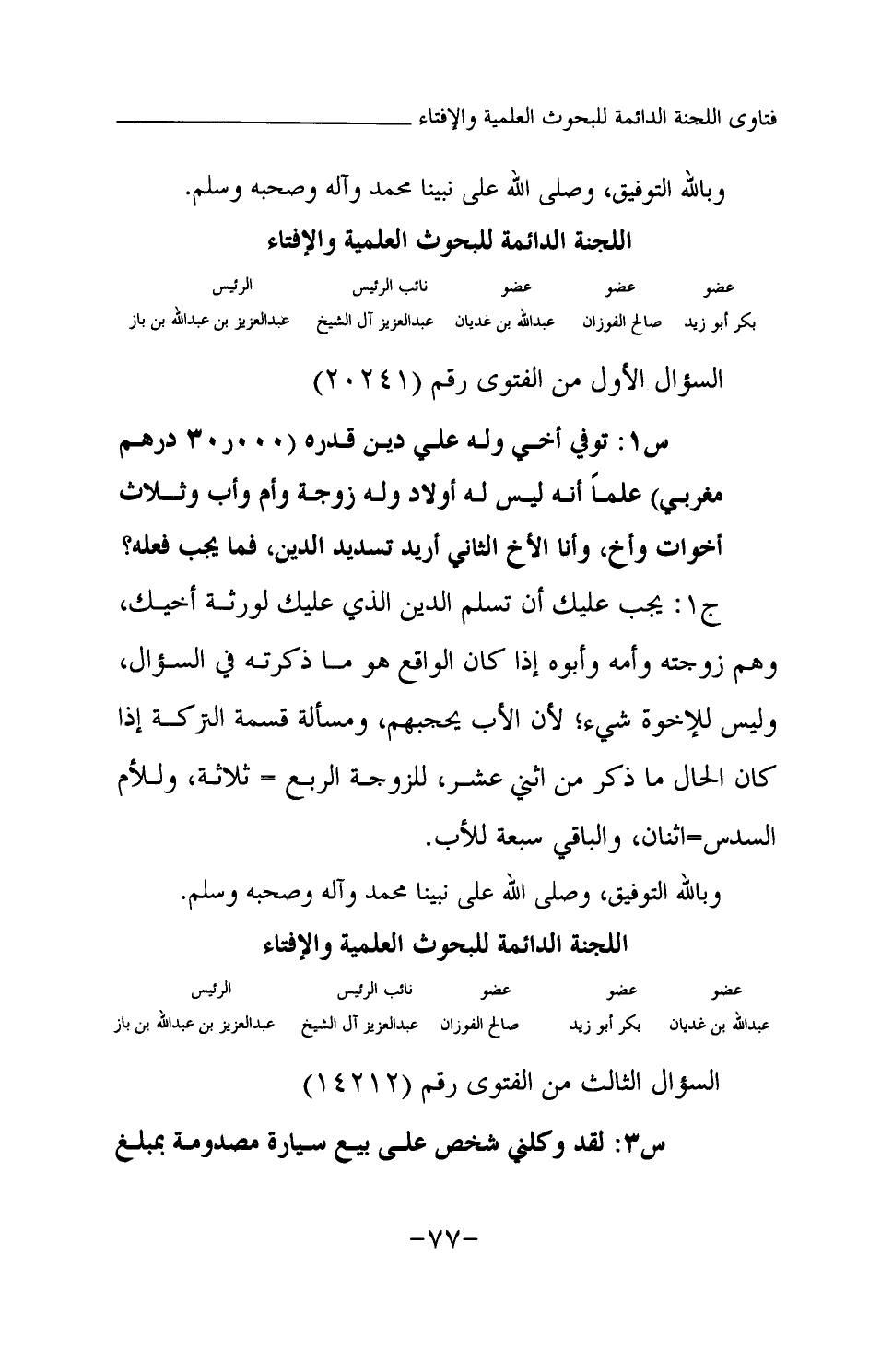 السؤال الثالث من الفتوى رقم (14212)