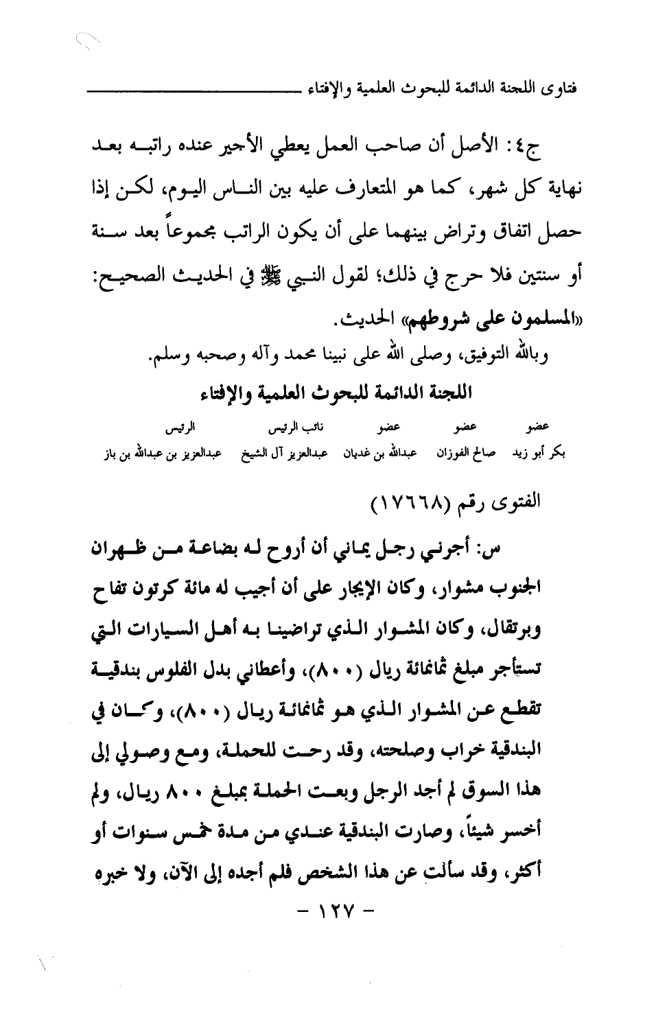 ج4: الأصل أن صاحب العمل يعطي الأجير عنده راتبه بعد نهاية كل شهر، كما هو المتعارف عليه بين الناس اليوم، لكن إذا حصل اتفاق وتراض بينهما على أن يكون الراتب مجموعا بعد سنة أو سنتين فلا حرج في ذلك؛ لقول النبي صلى الله عليه وسلم في الحديث الصحيح: «المسلمون على شروطهم (¬1) » الحديث. وبالله التوفيق، وصلى الله على نبينا محمد وآله وصحبه وسلم.