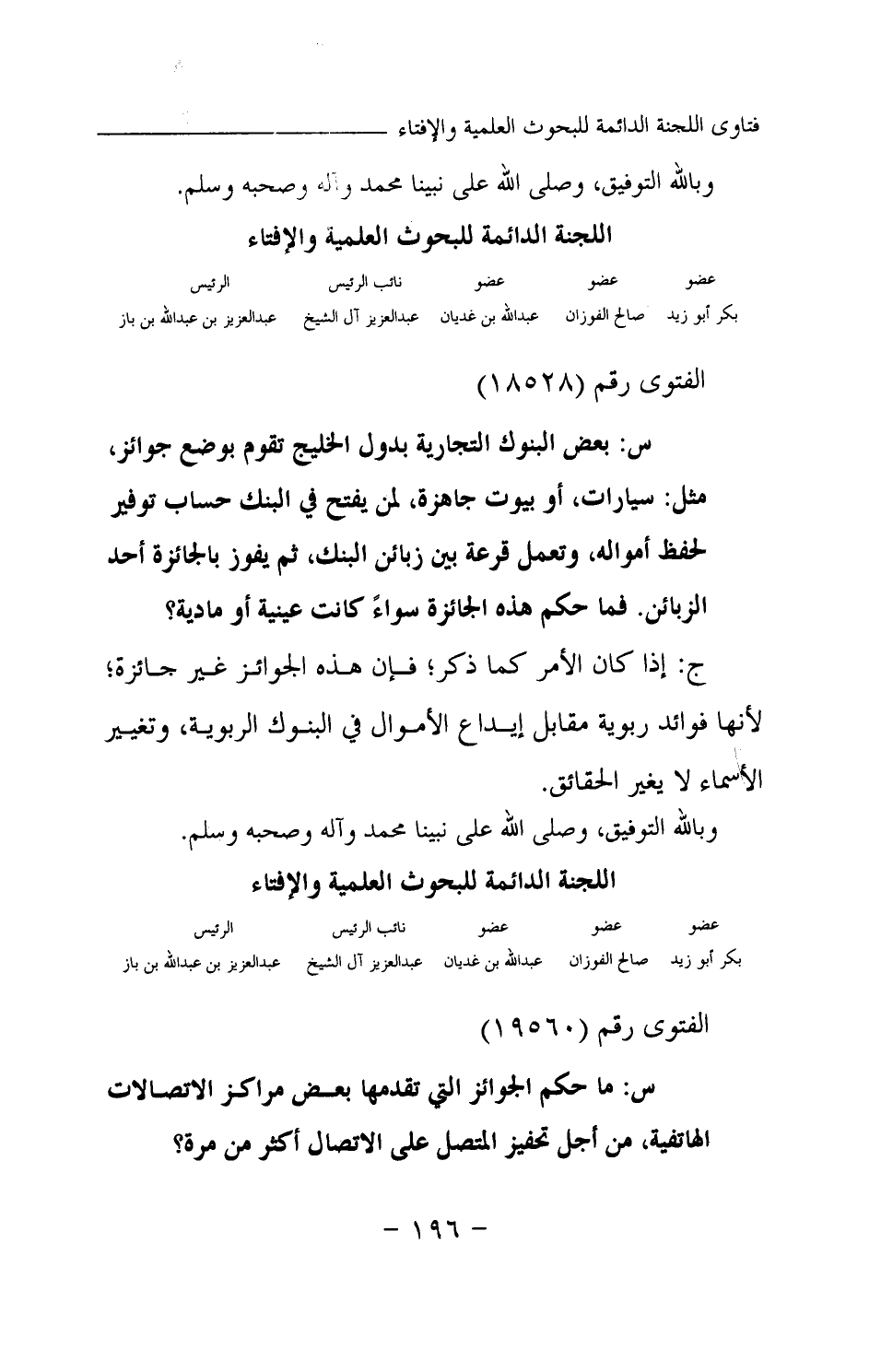 بكر أبو زيد ... صالح الفوزان ... عبد الله بن غديان ... عبد العزيز آل الشيخ ... عبد العزيز بن عبد الله بن باز