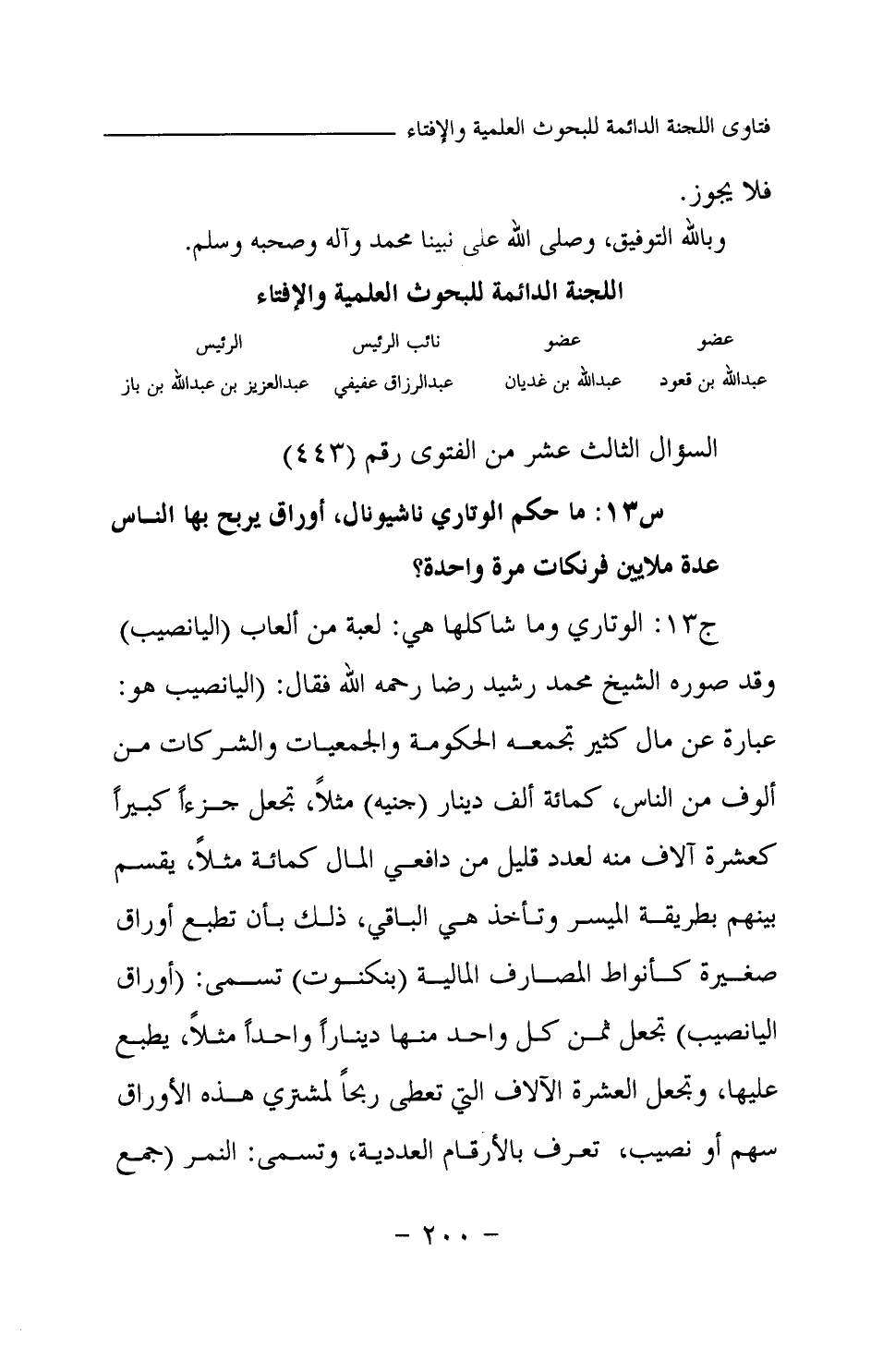 السؤال الثالث عشر من الفتوى رقم (443)