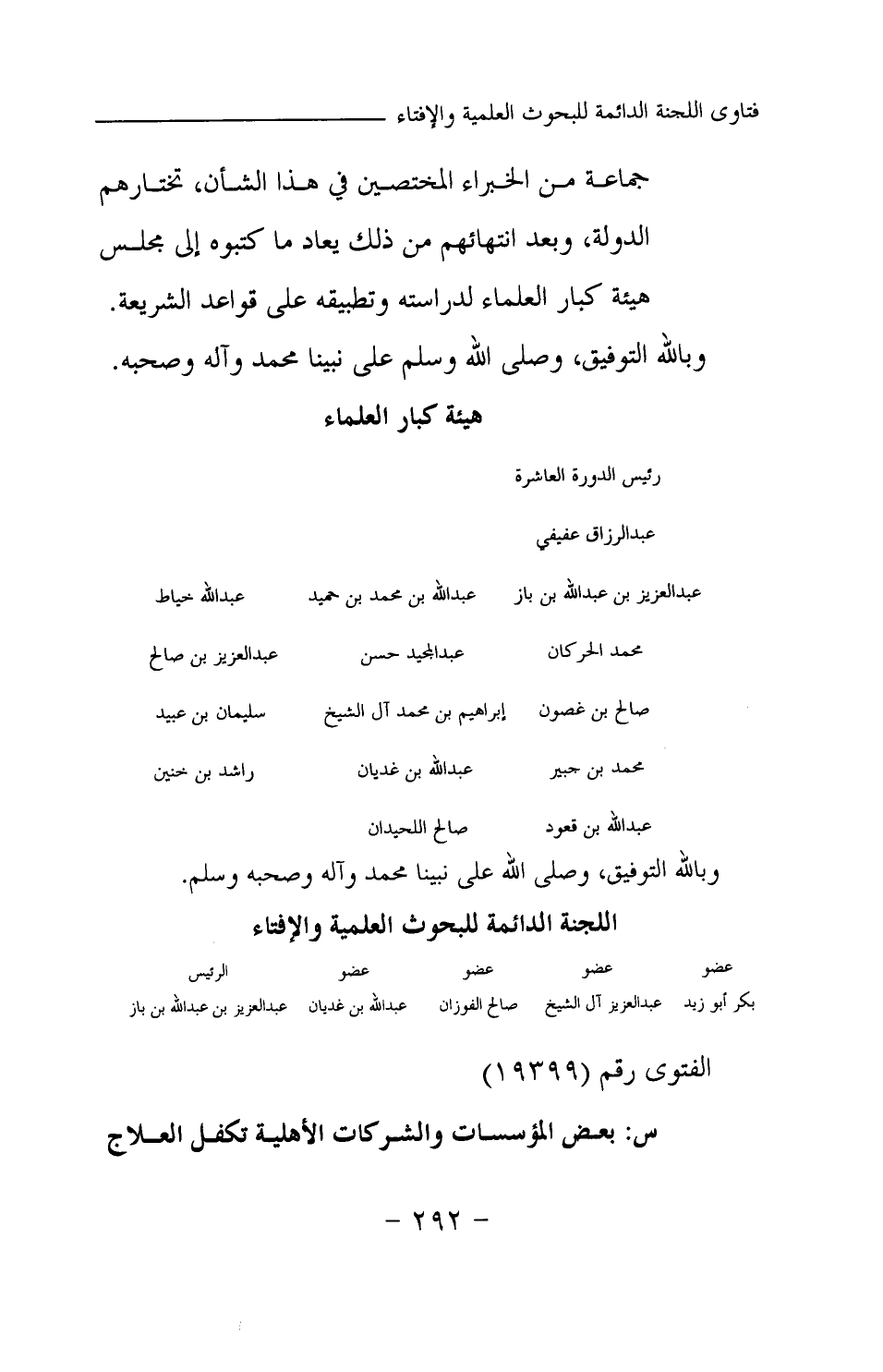عبد العزيز بن عبد الله بن باز ... عبد الله بن محمد بن حميد ... عبد الله خياط