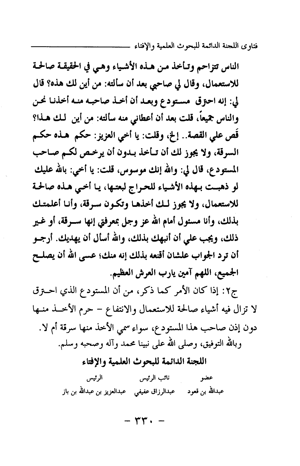 ج2: إذا كان الأمر كما ذكر، من أن المستودع الذي احترق لا تزال فيه أشياء صالحة للاستعمال والانتفاع حرم الأخذ منها دون إذن صاحب هذا المستودع، سواء سمي الأخذ منها سرقة أم لا. وبالله التوفيق، وصلى الله على نبينا محمد وآله وصحبه وسلم.