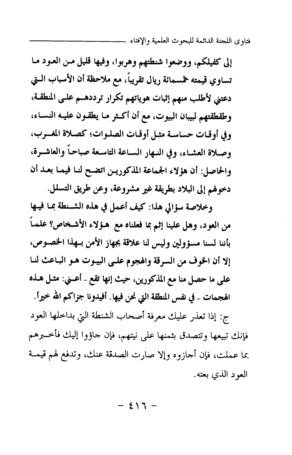 إلى كفيلكم، ووضعوا شنطتهم وهربوا، وفيها قليل من العود ما تساوي قيمته خمسمائة ريال تقريبا، مع ملاحظة أن الأسباب التي دعتني لأطلب منهم إثبات هوياتهم تكرار ترددهم على المنطقة، وطقطقتهم لبيبان البيوت، مع أن أكثر ما يطقون عليه النساء، وفي أوقات حساسة مثل أوقات الصلوات، كصلاة المغرب، وصلاة العشاء، وفي النهار الساعة التاسعة صباحا والعاشرة، والحاصل: أن هؤلاء الجماعة المذكورين اتضح لنا فيما بعد أن دخولهم إلى البلاد بطريقة غير مشروعة، وعن طريق التسلل. وخلاصة سؤالي هذا: كيف أعمل في هذه الشنطة بما فيها من العود؟ وهل علينا إثم بما فعلناه مع هؤلاء الأشخاص؟ علما بأننا لسنا مسؤولين، وليس لنا علاقة بجهاز الأمن بهذا الخصوص، إلا أن الخوف من السرقة والهجوم على البيوت هو الباعث لنا على ما حصل منا مع المذكورين، حيث إنها تقع- أعني: مثل هذه الهجمات- في نفس المنطقة التي نحن فيها. أفيدونا جزاكم الله خيرا.
