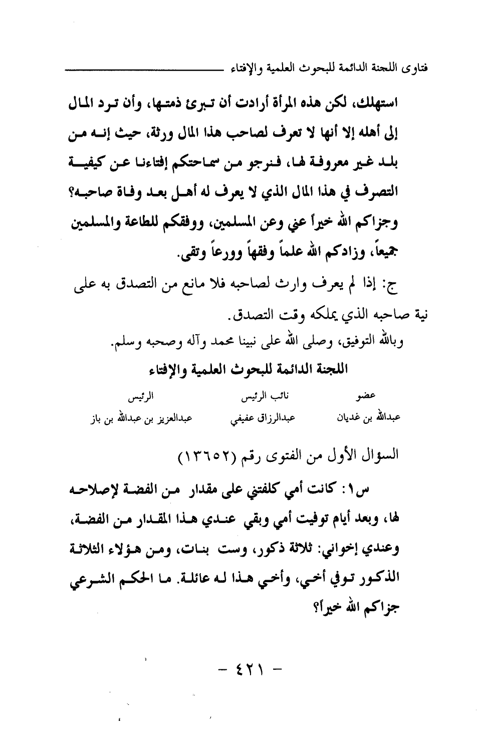 السؤال الأولى من الفتوى رقم (13652)