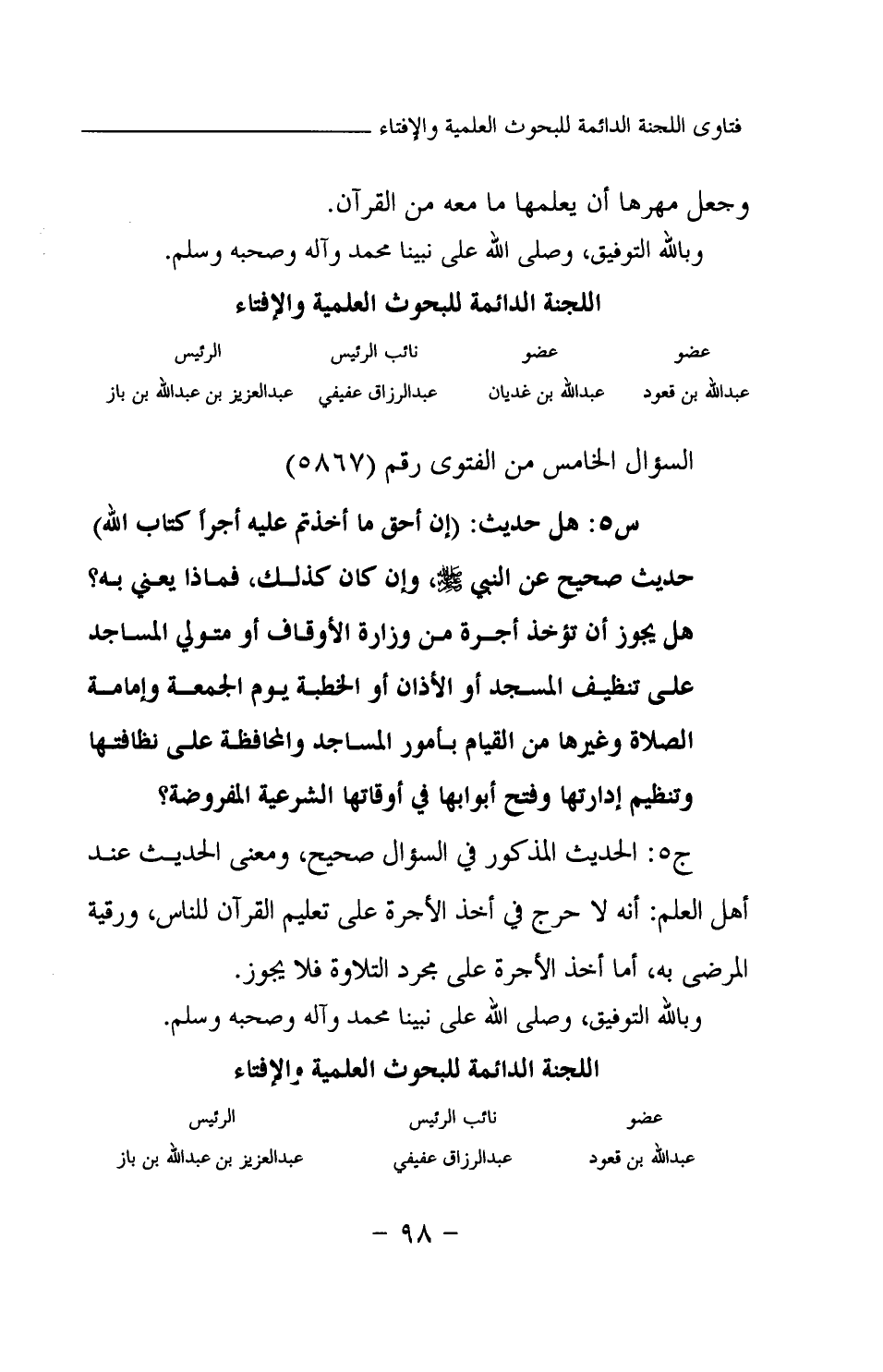 عبد الله بن قعود ... عبد الله بن غديان ... عبد الرزاق عفيفي ... عبد العزيز بن عبد الله بن باز