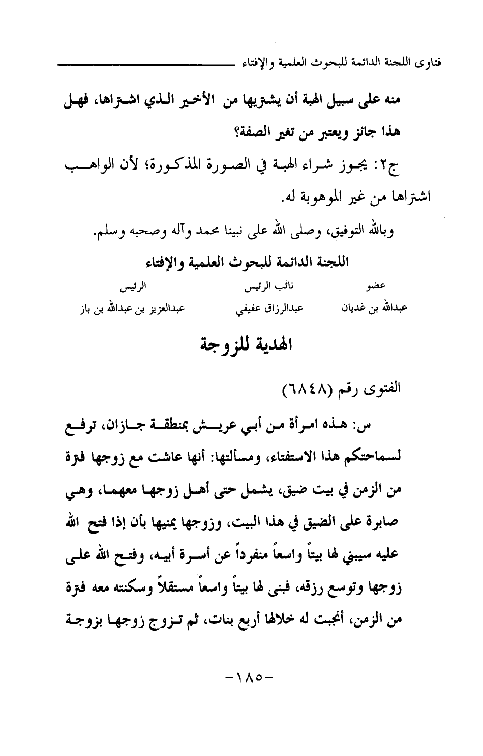 ج2: يجوز شراء الهبة في الصورة المذكورة؛ لأن الواهب اشتراها من غير الموهوبة له. وبالله التوفيق، وصلى الله على نبينا محمد وآله وصحبه وسلم.