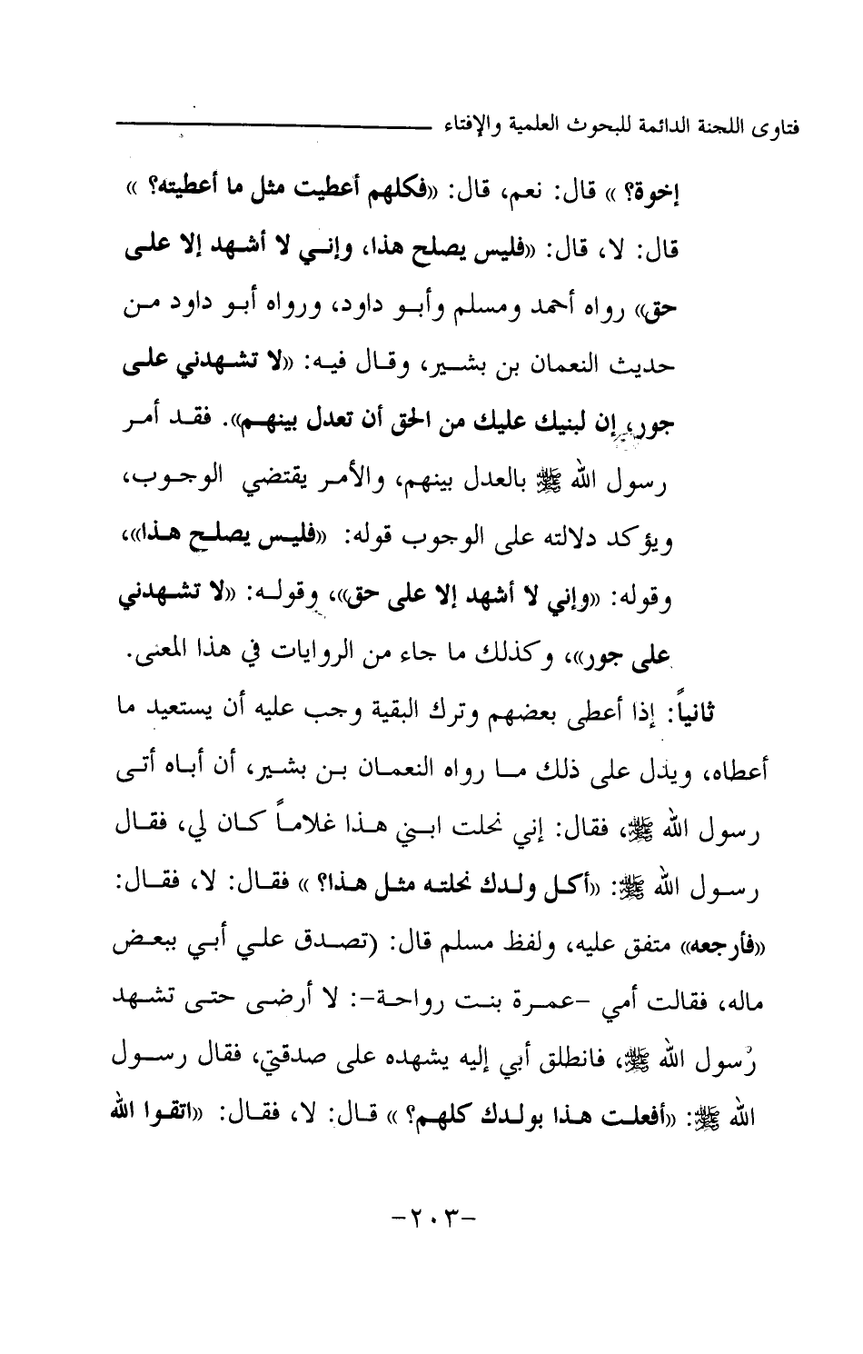 (¬1) صحيح البخاري الشهادات (2650) ، صحيح مسلم الهبات (1623) ، سنن النسائي النحل (3683) .