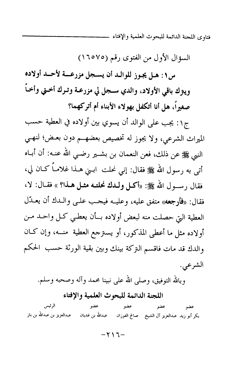 س1: هل يجوز للوالد أن يسجل مزرعة لأحد أولاده ويترك باقي الأولاد؟ والدي سجل لي مزرعة وترك أختي وأخا صغيرا، هل أنا أتكفل بهؤلاء الأبناء أم أتركهما؟