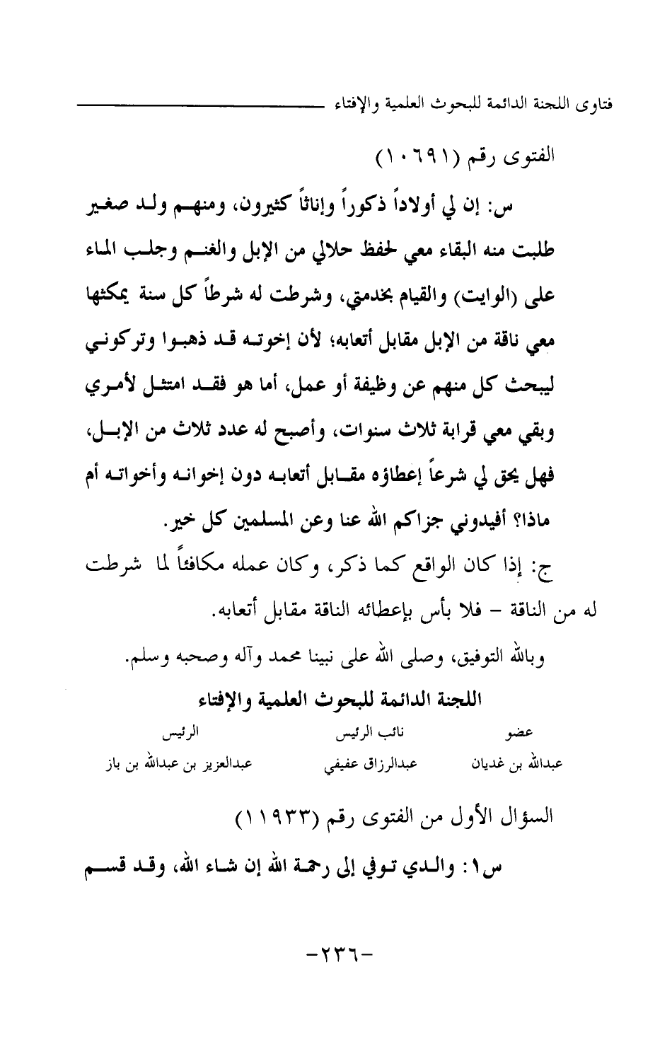 ج: إذا كان الواقع كما ذكر، وكان عمله مكافئا لما شرطت له من الناقة- فلا بأس بإعطائه الناقة مقابل أتعابه. وبالله التوفيق، وصلى الله على نبينا محمد وآله وصحبه وسلم.