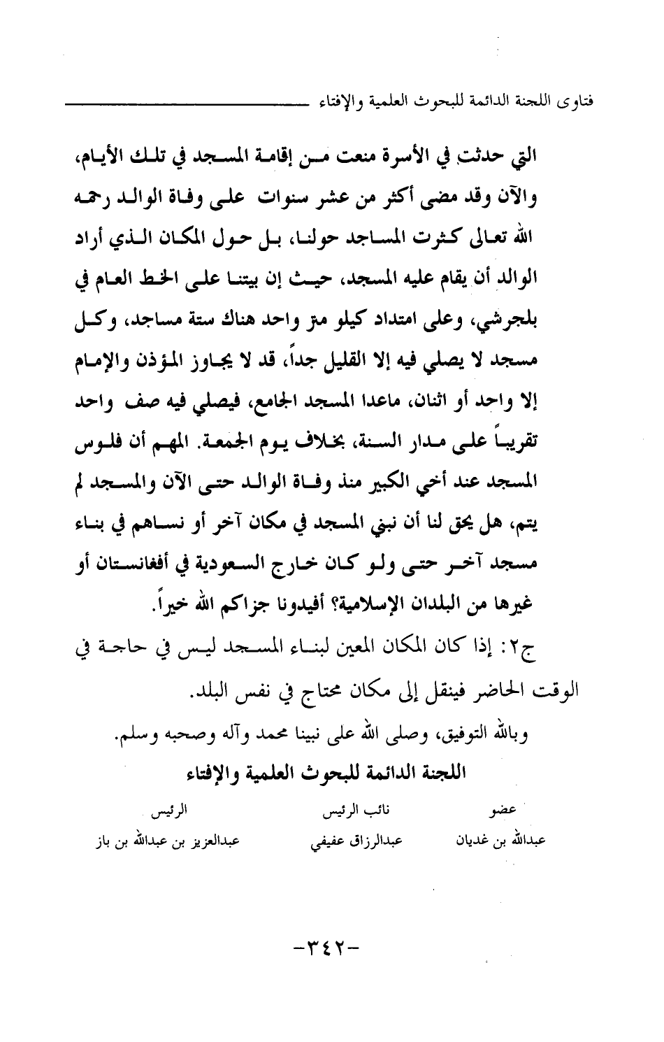 ج2: إذا كان المكان المعين لبناء المسجد ليس في حاجة في وقت الحاضر فينقل إلى مكان محتاج في نفس البلد. وبالله التوفيق، وصلى الله على نبينا محمد وآله وصحبه وسلم