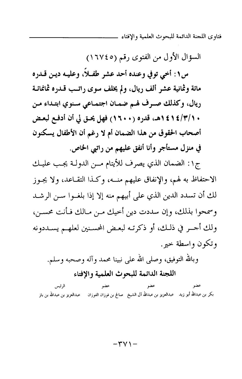 السؤال الأول من الفتوى رقم (16745)