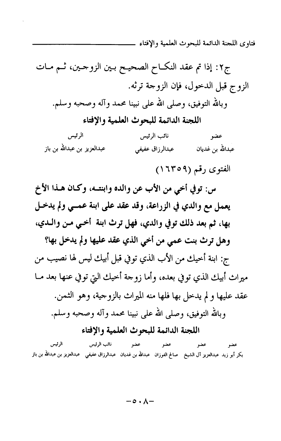 بكر أبو زيد ... عبد العزيز آل الشيخ ... صالح الفوزان ... عبد الله بن غديان ... عبد الرزاق عفيفي ... عبد العزيز بن عبد الله بن باز