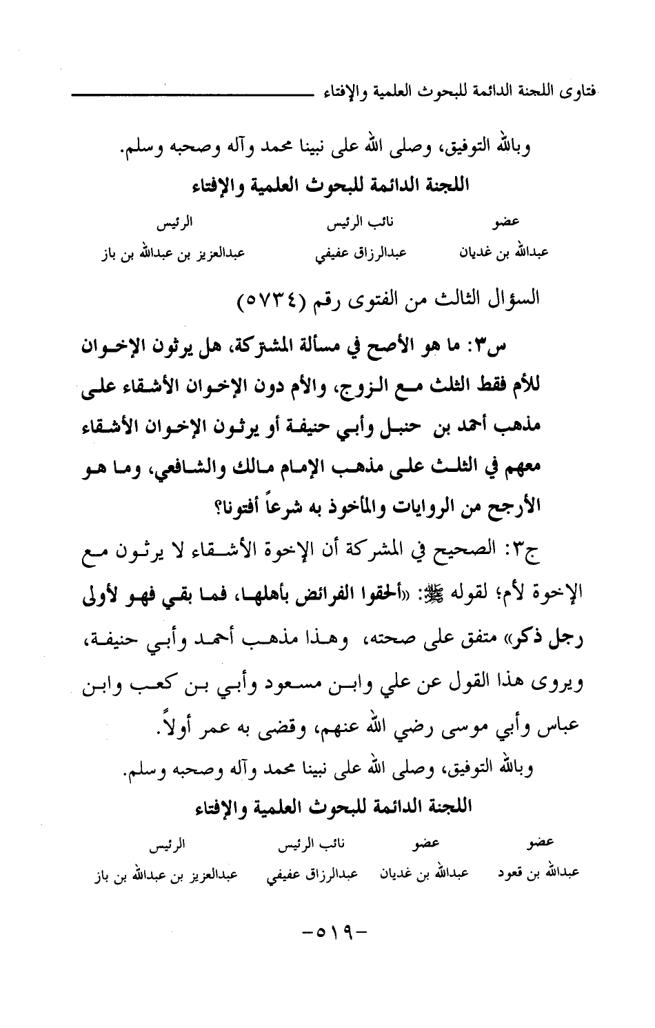 السؤال الثالث من الفتوى رقم (5734)