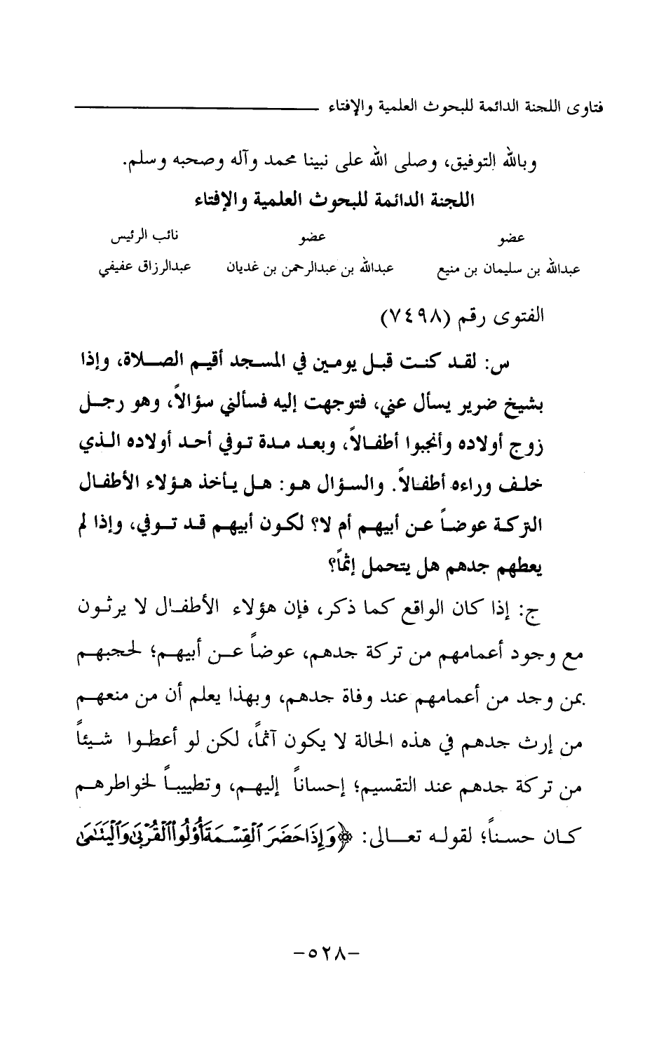 عبد الله بن سليمان بن منيع ... عبد الله بن عبد الرحمن بن غديان ... عبد الرزاق عفيفي