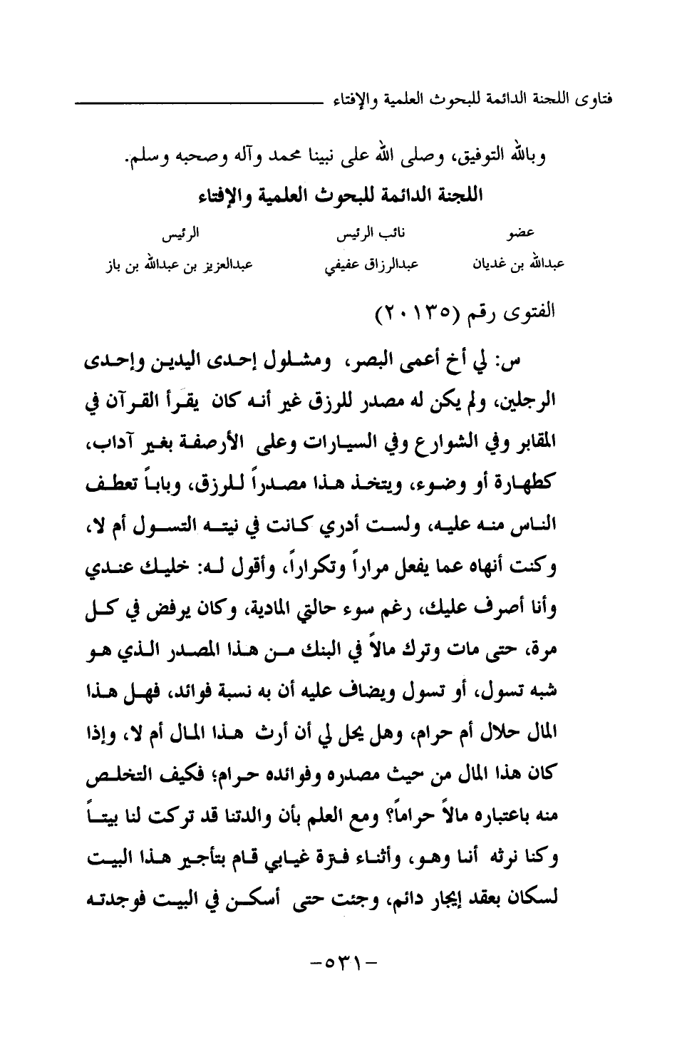 س: لي أخ أعمى البصر، ومشلول إحدى اليدين وإحدى الرجلين، ولم يكن له مصدر للرزق غير أنه كان يقرأ القرآن في المقابر وفي الشوارع وفي السيارات وعلى الأرصفة بغير آداب، كطهارة أو وضوء، ويتخذ هذا مصدرا للرزق، وبابا تعطف الناس منه عليه، ولست أدري كانت في نيته التسول أم لا، وكنت أنهاه عما يفعل مرارا وتكرارا، وأقول له: خليك عندي وأنا أصرف عليك. رغم سوء حالتي المادية، وكان يرفض في كل مرة، حتى مات وترك مالا في البنك من هذا المصدر الذي هو شبه تسول، أو تسول ويضاف عليه أن به نسبة فوائد، فهل هذا المال حلال أم حرام؟ وهل يحل لي أن أرث هذا المال أم لا؟ وإذا كان هذا المال من حيث مصدره وفوائده حرام، فكيف التخلص منه باعتباره مالا حراما؟ ومع العلم بأن والدتنا قد تركت لنا بيتا وكنا نرثه أنا وهو، وأثناء فترة غيابي قام بتأجير هذا البيت لسكان بعقد إيجار دائم، وجئت حتى أسكن في البيت فوجدته