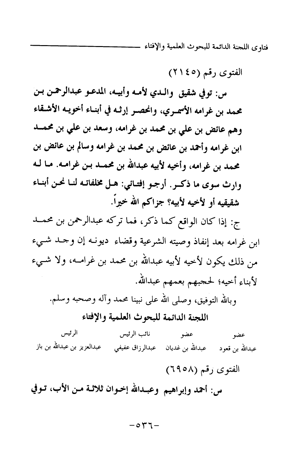 عبد الله بن قعود ... عبد الله بن غديان ... عبد الرزاق عفيفي ... عبد العزيز بن عبد الله بن باز