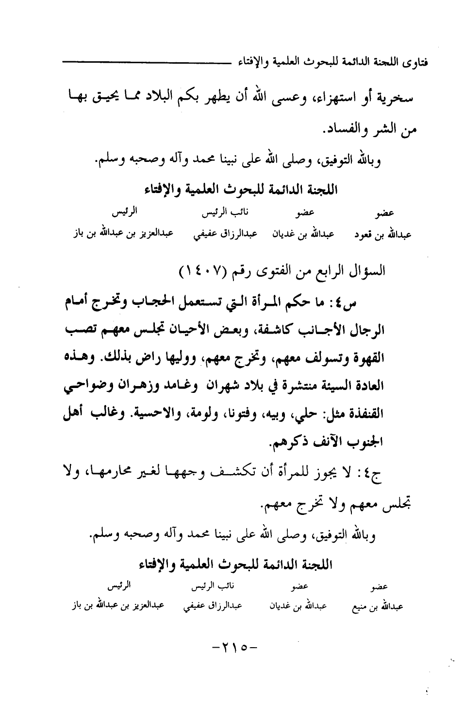 عبد الله بن منيع ... عبد الله بن غديان ... عبد الرزاق عفيفي ... عبد العزيز بن عبد الله بن باز