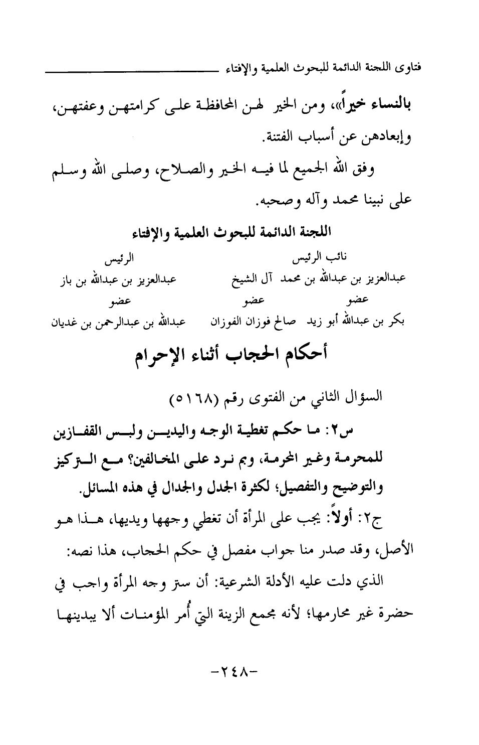 بكر بن عبد الله أبو زيد ... صالح بن فوزان الفوزان ... عبد الله بن عبد الرحمن بن غديان ... عبد العزيز بن عبد الله بن محمد آل الشيخ ... عبد العزيز بن عبد الله بن باز