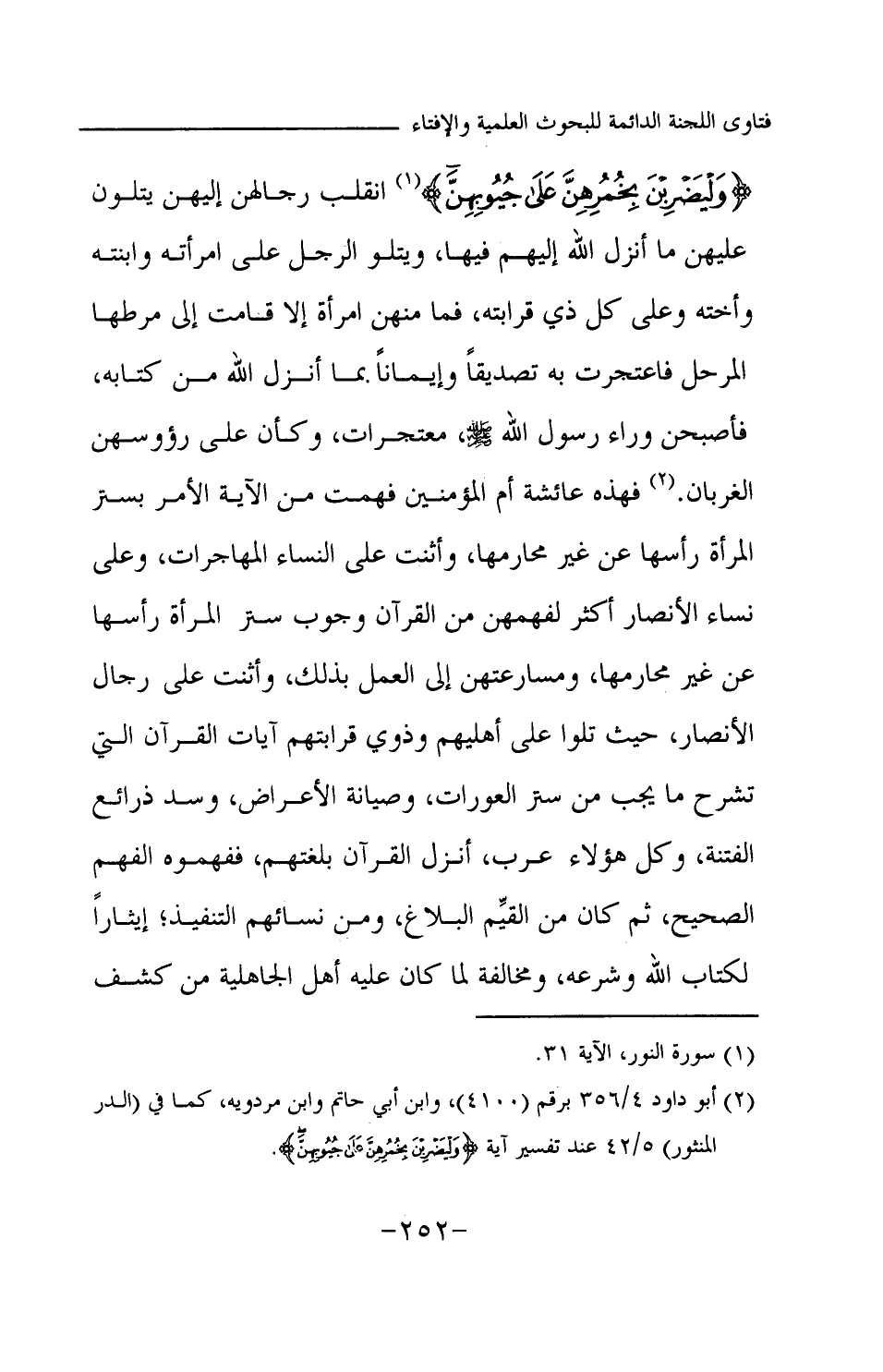(¬2) سورة النور الآية 31 (¬1) {وَلْيَضْرِبْنَ بِخُمُرِهِنَّ عَلَى جُيُوبِهِنَّ}