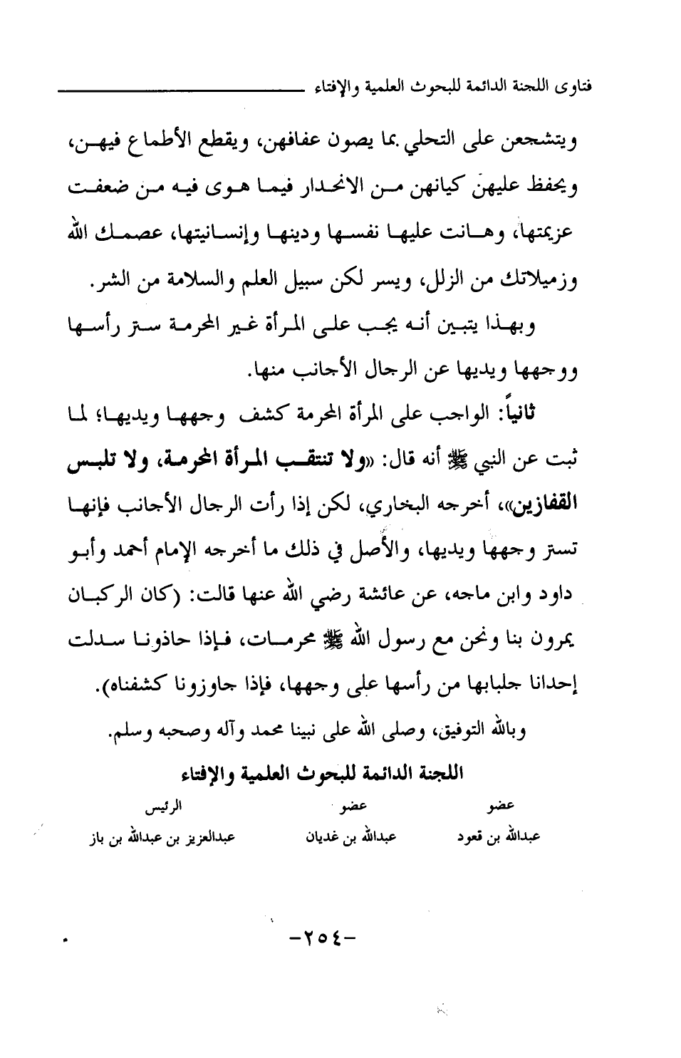 ويتشجعن على التحلي بما يصون عفافهن، ويقطع الأطماع فيهن، ويحفظ عليهن كيانهن من الانحدار فيما هوى فيه من ضعفت عزيمتها، وهانت عليها نفسها ودينها وإنسانيتها، عصمك الله وزميلاتك من الزلل، ويسر لكن سبيل العلم والسلامة من الشر. وبهذا يتبين أنه يجب على المرأة غير المحرمة ستر رأسها ووجهها ويديها عن الرجال الأجانب منها. ثانيا: الواجب على المرأة المحرمة كشف وجهها ويديها؛ لما ثبت عن النبي -صلى الله عليه وسلم- أنه قال: «ولا تنتقب المرأة المحرمة، ولا تلبس القفازين (¬1) » أخرجه البخاري لكن إذا رأت الرجال الأجانب فإنها تستر وجهها ويديها، والأصل في ذلك ما أخرجه الإمام أحمد وأبو داود وابن ماجه عن عائشة رضي الله عنها قالت: «كان الركبان يمرون بنا ونحن مع رسول الله -صلى الله عليه وسلم- محرمات، فإذا حاذونا سدلت إحدانا جلبابها من رأسها على وجهها، فإذا جاوزونا كشفناه (¬2) »