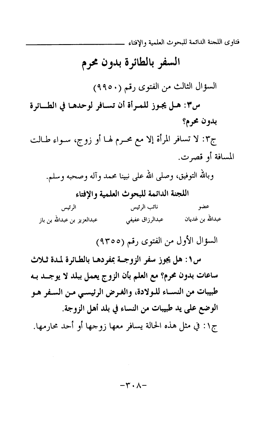 س3: هل يجوز للمرأة أن تسافر لوحدها في الطائرة بدون محرم؟