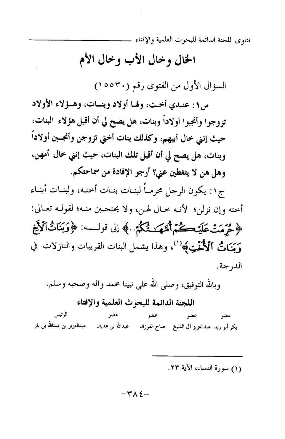 بكر أبو زيد ... عبد العزيز آل الشيخ ... صالح الفوزان ... عبد الله بن غديان ... عبد العزيز بن عبد الله بن باز