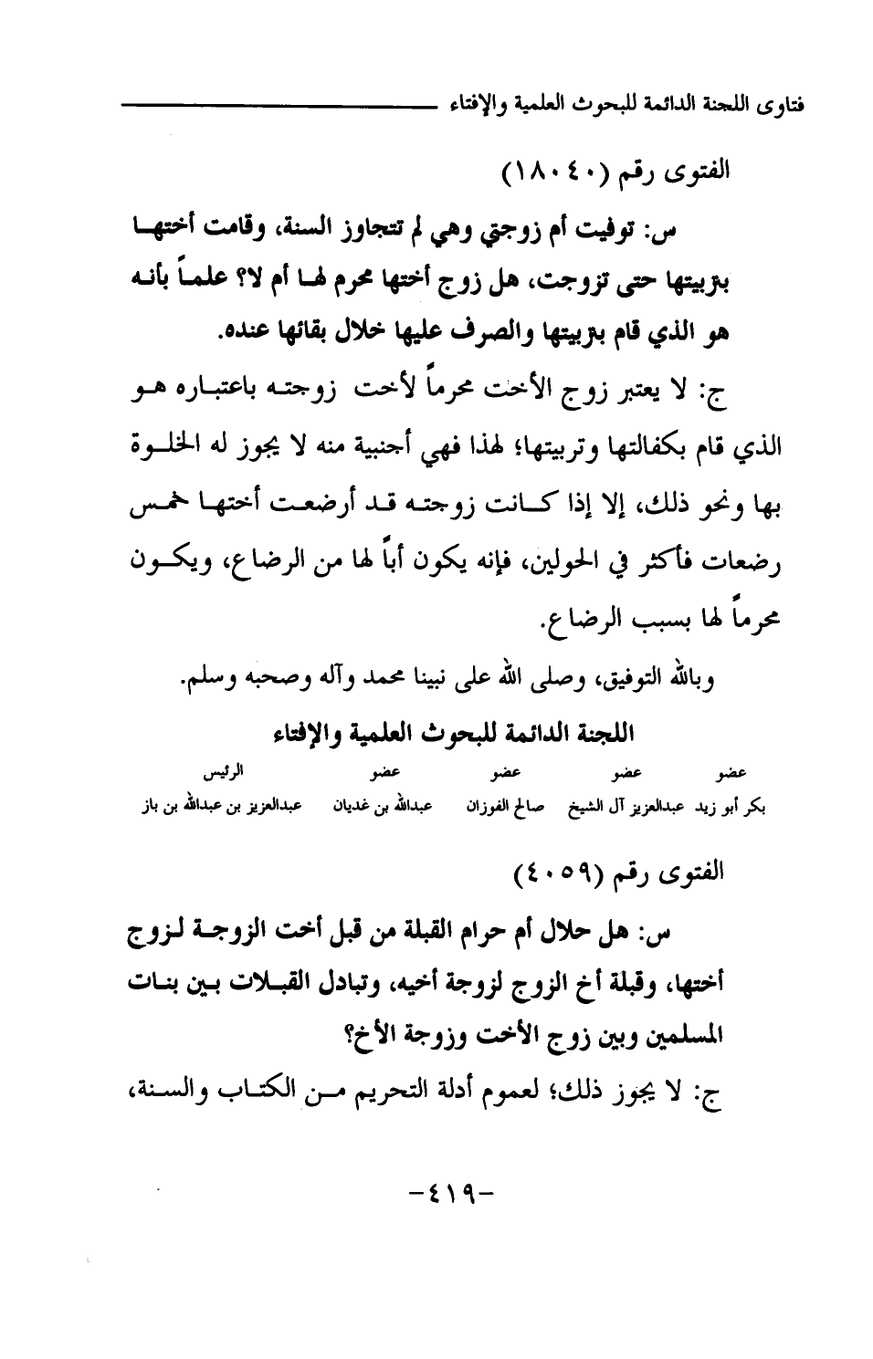 بكر أبو زيد ... عبد العزيز آل الشيخ ... صالح الفوزان ... عبد الله بن غديان ... عبد العزيز بن عبد الله بن باز