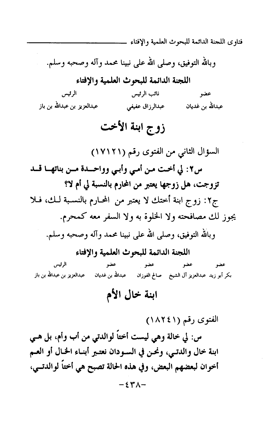 بكر أبو زيد ... عبد العزيز آل الشيخ ... صالح الفوزان ... عبد الله بن غديان ... عبد العزيز بن عبد الله بن باز