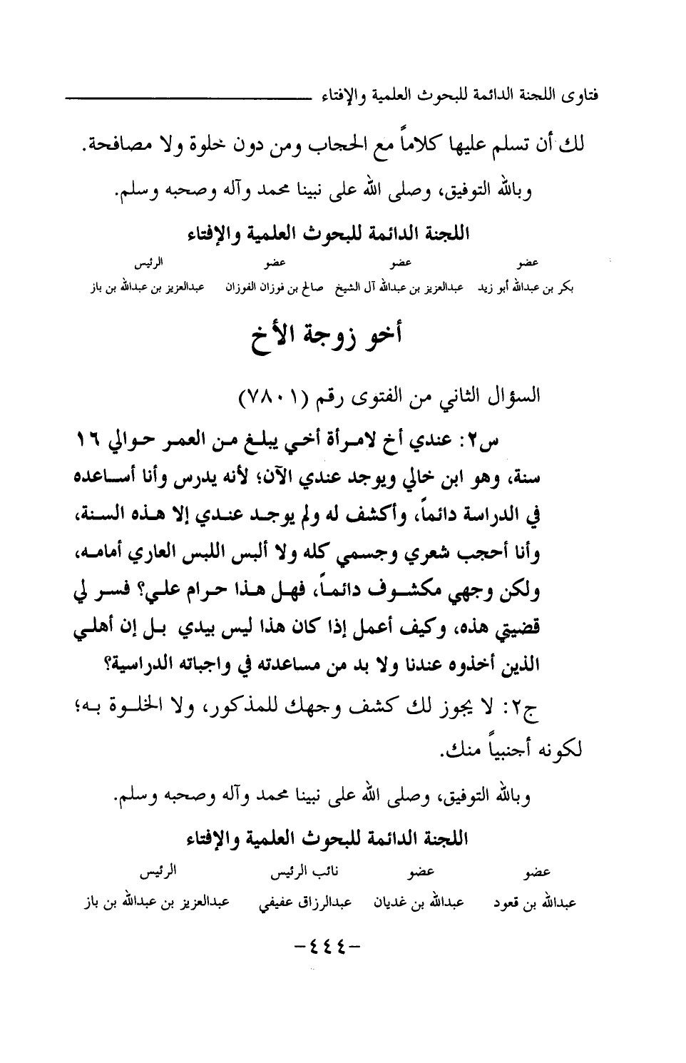 بكر بن عبد الله أبو زيد ... عبد العزيز بن عبد الله آل الشيخ ... صالح بن فوزان الفوزان ... عبد العزيز بن عبد الله بن باز