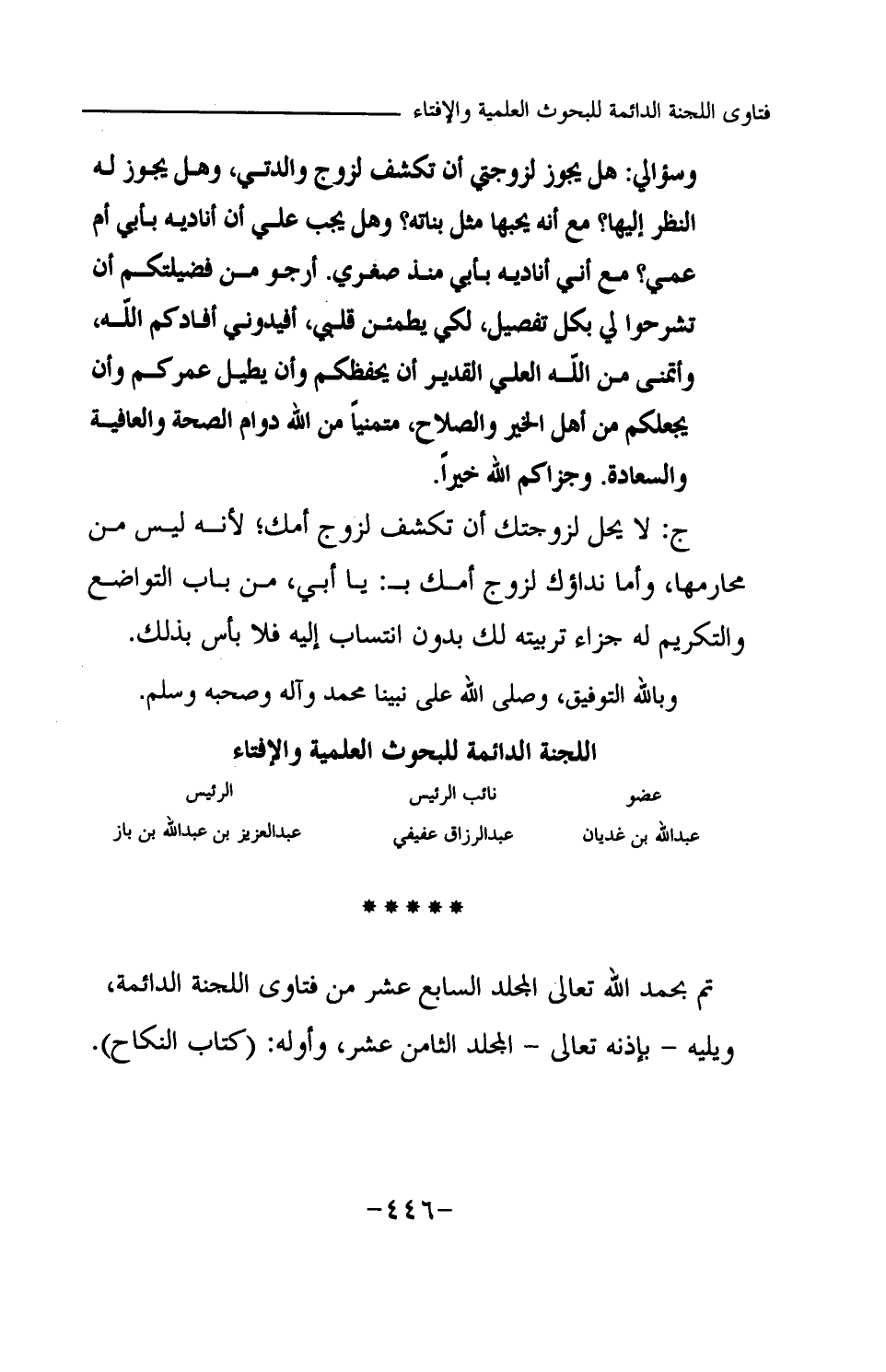 تم بحمد الله تعالى المجلد السابع عشر من فتاوى اللجنة الدائمة، ويليه -بإذنه تعالى- المجلد الثامن عشر، وأوله: (كتاب النكاح) .