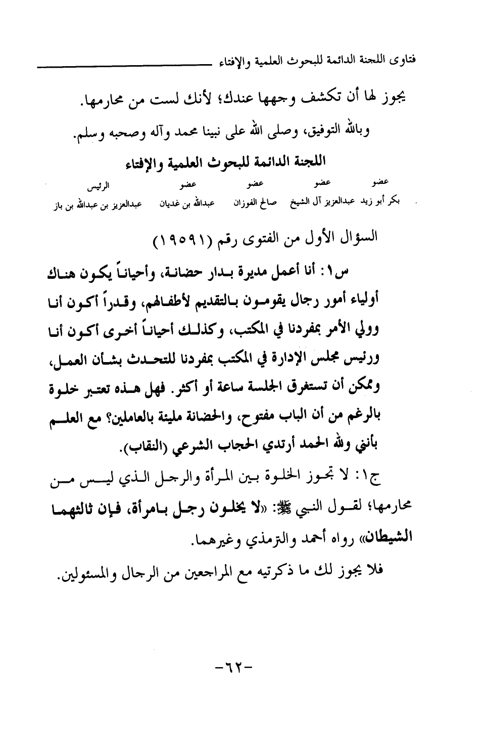 بكر أبو زيد ... عبد العزيز آل الشيخ ... صالح الفوزان ... عبد الله بن غديان ... عبد العزيز بن عبد الله بن باز