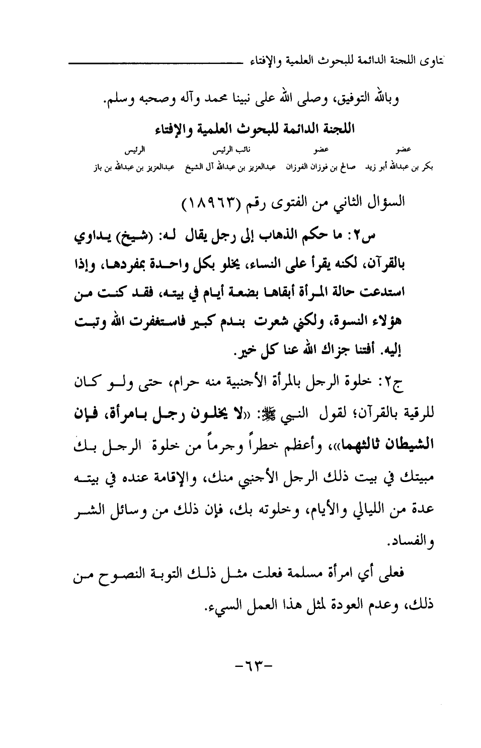 بكر بن عبد الله أبو زيد ... صالح بن فوزان الفوزان ... عبد العزيز بن عبد الله آل الشيخ ... عبد العزيز بن عبد الله بن باز