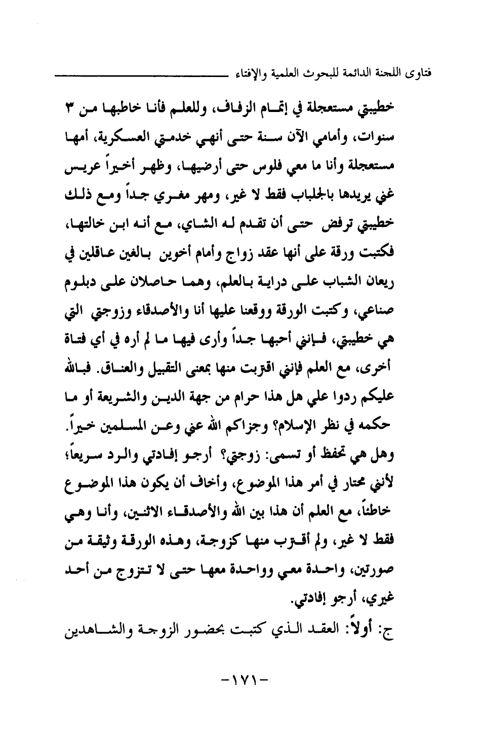 ج: أولا: العقد الذي كتبت بحضور الزوجة والشاهدين