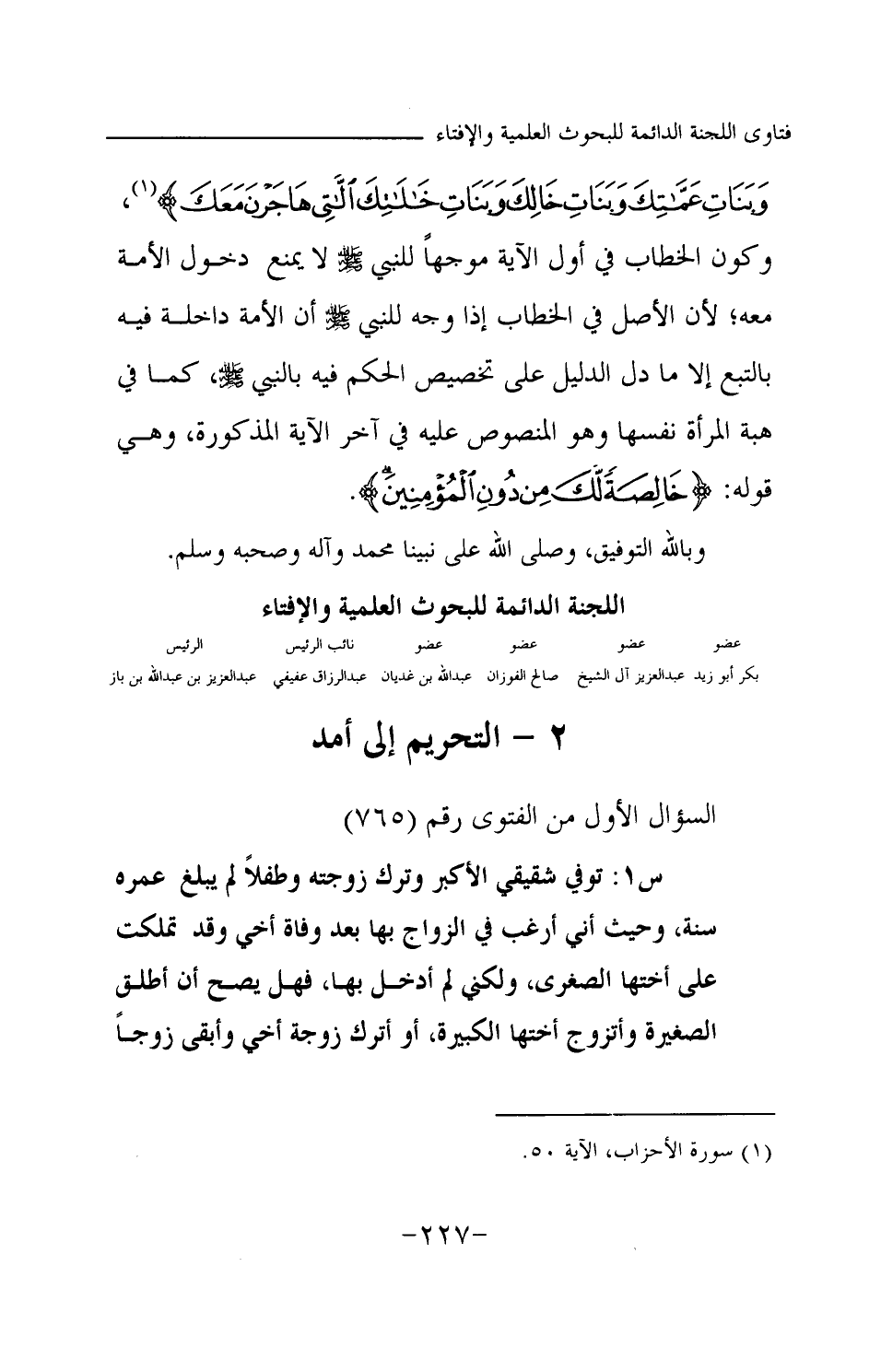 السؤال الأول من الفتوى رقم (765)