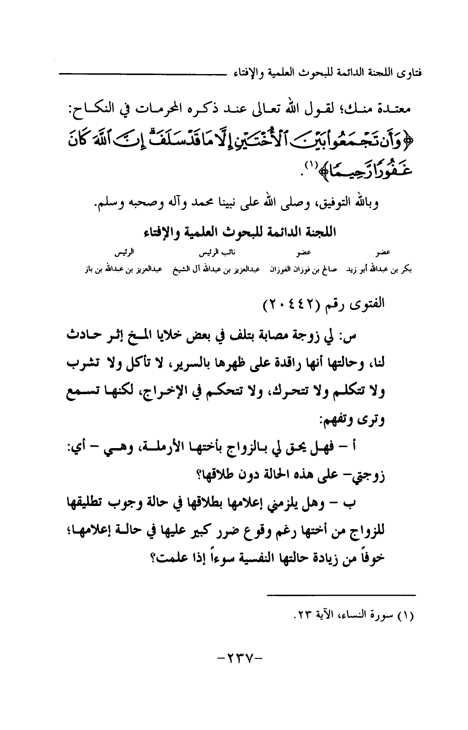 بكر بن عبد الله أبو زيد ... صالح بن فوزان الفوزان ... عبد العزيز بن عبد الله آل الشيخ ... عبد العزيز بن عبد الله بن باز
