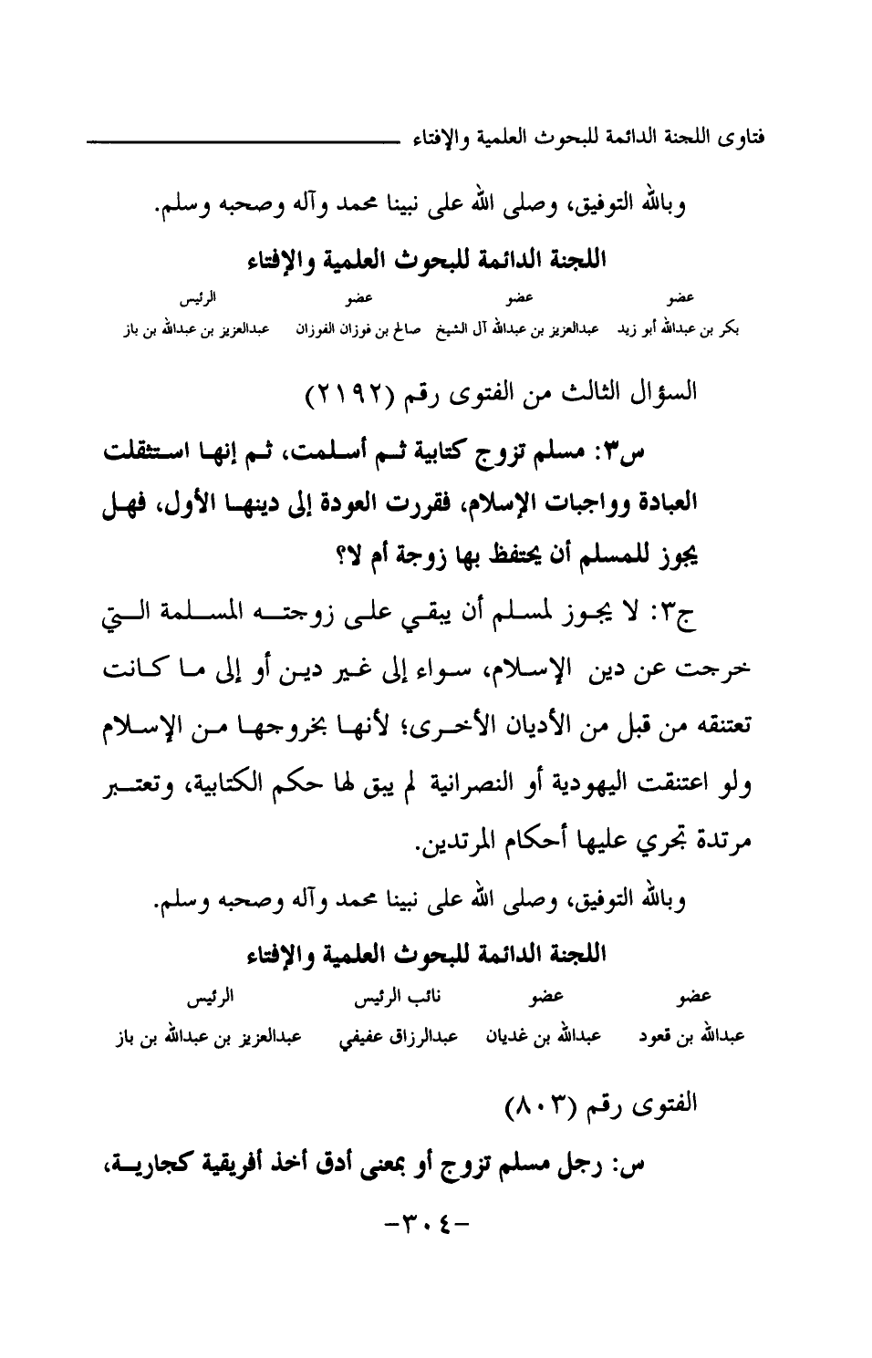 بكر بن عبد الله أبو زيد ... عبد العزيز بن عبد الله آل الشيخ ... صالح بن فوزان الفوزان ... عبد العزيز بن عبد الله بن باز