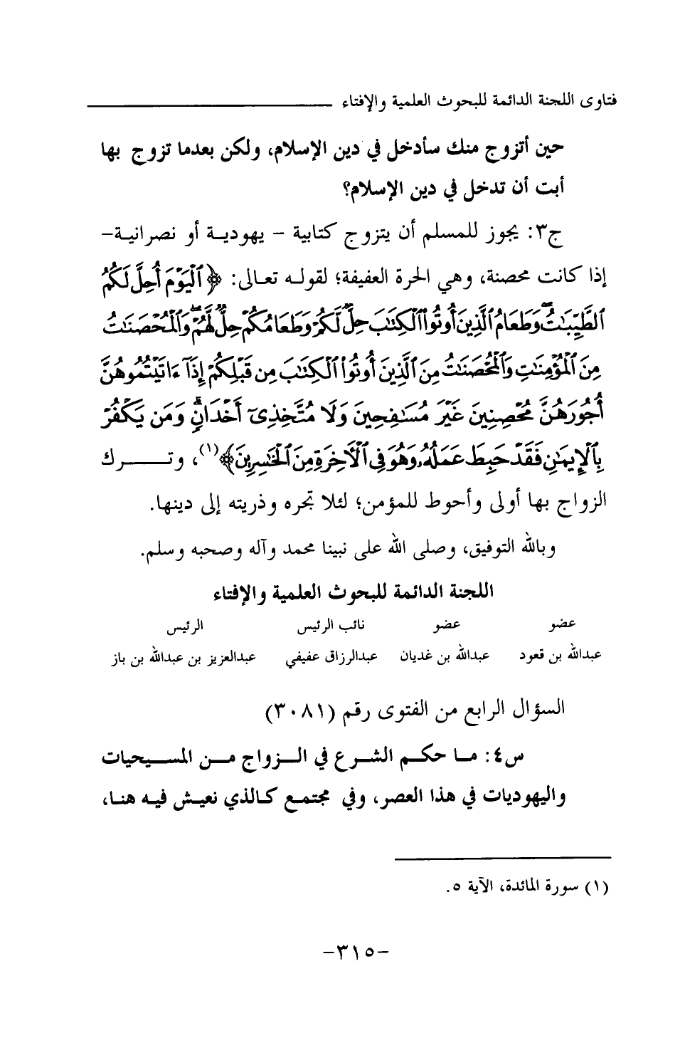س4: ما حكم الشرع في الزواج من المسيحيات واليهوديات في هذا العصر، وفي مجتمع كالذي نعيش فيه هنا،