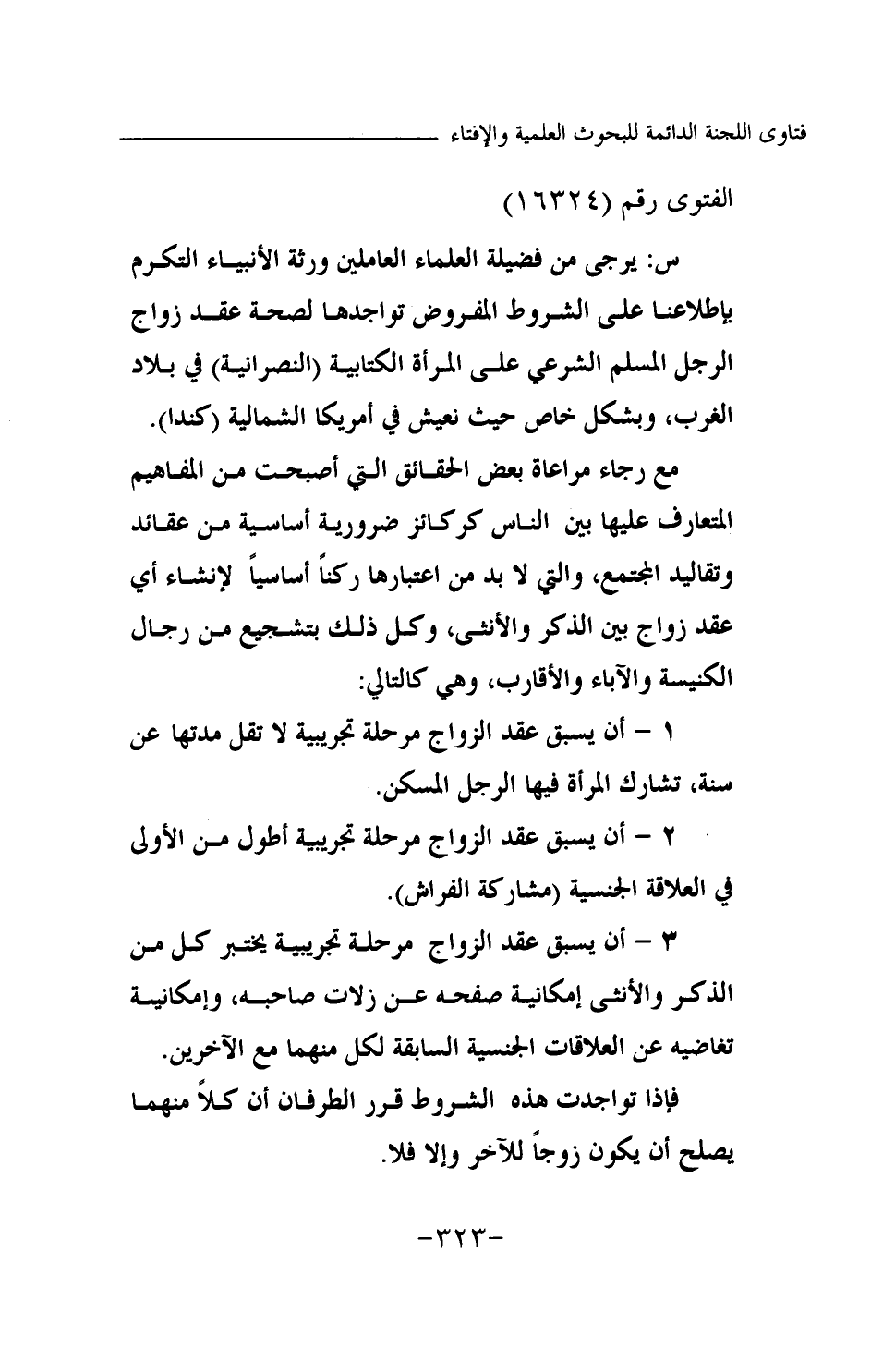 س: يرجى من فضيلة العلماء العاملين ورثة الأنبياء التكرم بإطلاعنا على الشروط المفروض تواجدها لصحة عقد زواج الرجل المسلم الشرعي على المرأة الكتابية (النصرانية) في بلاد الغرب، وبشكل خاص حيث نعيش في أمريكا الشمالية (كندا)