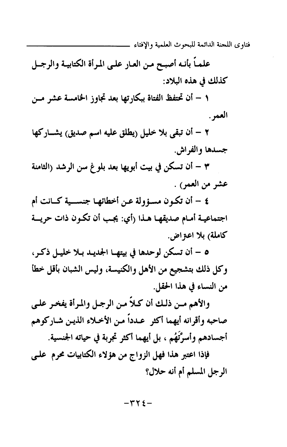 4- أن تكون مسؤولة عن أخطائها جنسية كانت أم اجتماعية أمام صديقها هذا (أي: يجب أن تكون ذات حرية كاملة) بلا اعتراض.