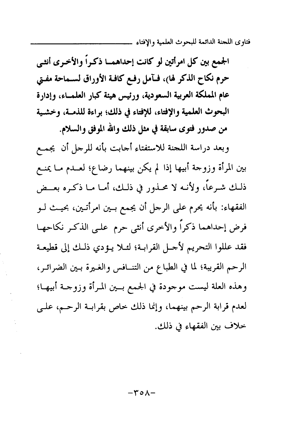 الجمع بين كل امرأتين لو كانت إحداهما ذكرا والأخرى أنثى حرم نكاح الذكر لها) ، فآمل رفع كافة الأوراق لسماحة مفتي عام المملكة العربية السعودية ورئيس هيئة كبار العلماء، وإدارة البحوث العلمية والإفتاء، للإفتاء في ذلك؛ براءة للذمة، وخشية من صدور فتوى سابقة في مثل ذلك والله الموفق والسلام.