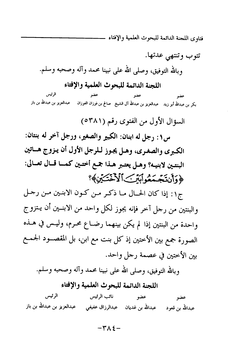 بكر بن عبد الله أبو زيد ... عبد العزيز بن عبد الله آل الشيخ ... صالح بن فوزان الفوزان ... عبد العزيز بن عبد الله بن باز