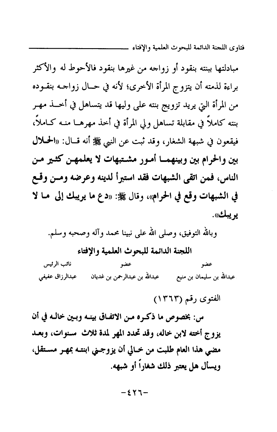 عبد الله بن سليمان بن منيع ... عبد الله بن عبد الرحمن بن غديان ... عبد الرزاق عفيفي