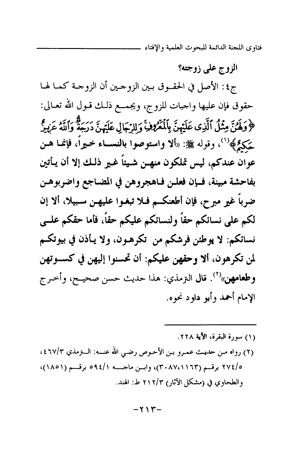 (¬2) رواه من حديث عمرو بن الأحوص رضي الله عنه: الترمذي 3 / 467، 5 / 274 برقم (1163، 3087) ، وابن ماجه 1 / 594 برقم (1851) ، والطحاوي في (مشكل الآثار) 3 / 212 ط: الهند.
