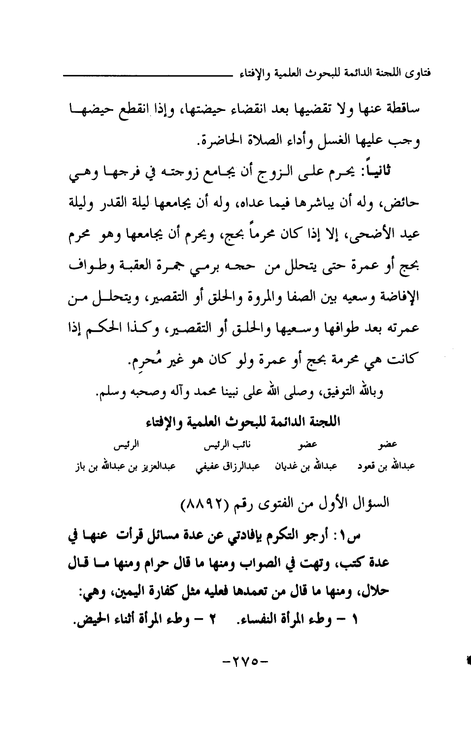 السؤال الأول من الفتوى رقم (8892)
